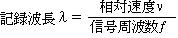 すなわち、同じ信号周波数でも相対速度が速くなれば記録波長は、長くなるということです。